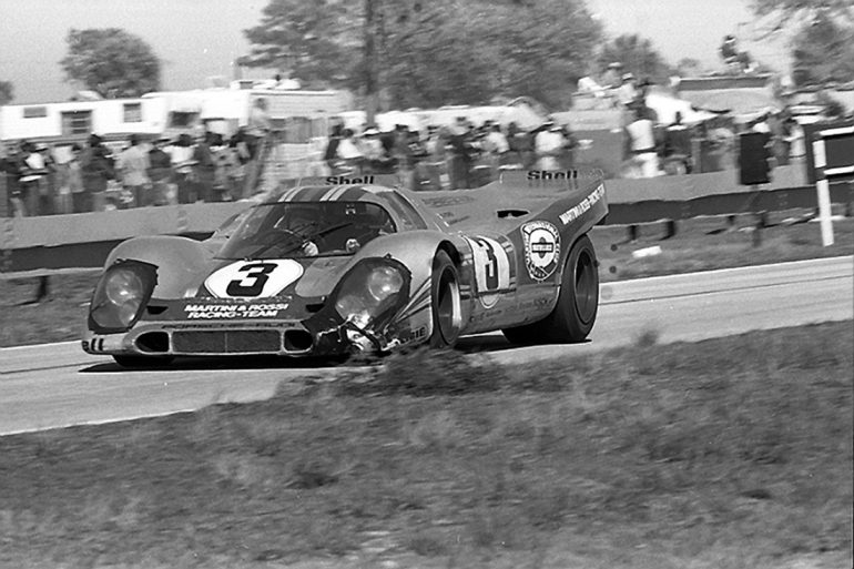 Sebring 12 Hours; March 20, 1971 The Porsche 917K of Vic Elford and Gérard Larrousse, from Hans-Dieter Dechent’s team, finished first overall despite a delay from being bumped by Hugh Kleinpeter’s Lola and severe brake issues. Photo courtesy of: THE KLEMANTASKI COLLECTIONPO Box 8204, Stamford, CT 06905 USA., Tel: (203)...